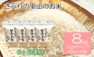• 定期便 【6ヶ月連続】さぶりの里山のお米 コシヒカリ精米 小分けパックのセット 8kg