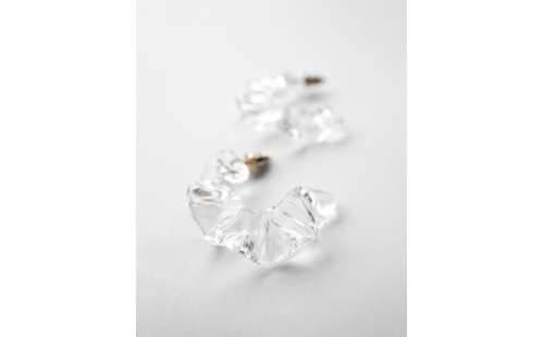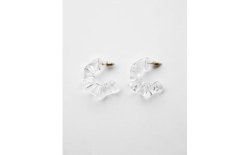 枝々に層をなす透明な雨氷が、ドレープを描くさまをガラスで表現。 すじ模様がガラスに施されており、きらきらと耳元を明るく演出します。 *ピアスとイヤリングは、1個の商品につき左右ペアでのご用意となります。 ※ハンドメイドのため、形状に個体差が出る場合がございます。 ※アクセサリーの金具は、体質によってかゆみ・かぶれが生じる場合があります。(金属アレルギー等)。皮膚に異常を感じた時はご使用をお止めいただき、皮膚専門医にご相談ください。 ※離島への配送不可(北海道・沖縄本島は可) ※着日指定不可 【サイズ】 ガラス大きさ Φ33(mm) 【素材】 チャーム:耐熱ガラス チェーン・金具:真鍮・ ゴールドメッキ ガラス・金具接着部:UVレジン(紫外線硬化樹脂)