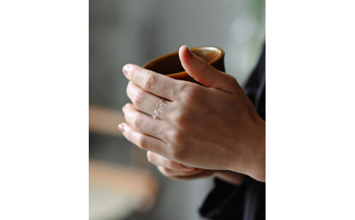 軽やかに編んだような繊細なガラスがアクセントになり、手元を女性らしい雰囲気にしてくれます。