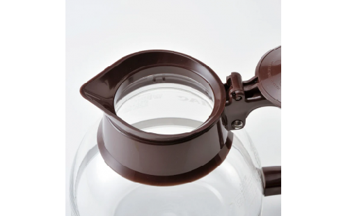 注ぎやすく水切れの良い樹脂性の注ぎ口です。フタの開閉はらくらくワンプッシュ式。ハンドルは2バンド構造の安心設計です。耐熱ガラス製なので熱湯洗浄が可能で衛生的に使用できます。