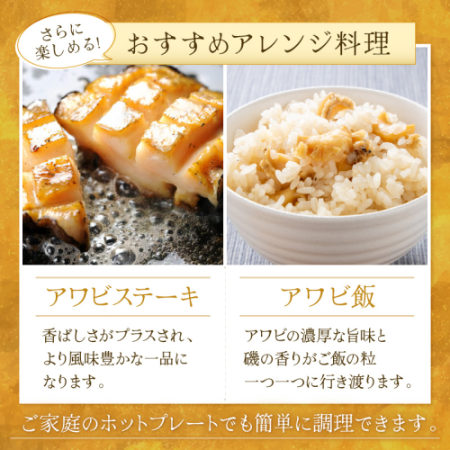 キャンプやBBQはもちろん、ご家庭のホットプレートでも簡単にご利用いただけます。そのまま食べても絶品ですが、アワビステーキ、アワビ飯等もおススメです!急速冷凍後に包装し、鮮度と素材の旨味を保ち、お届けいたします!