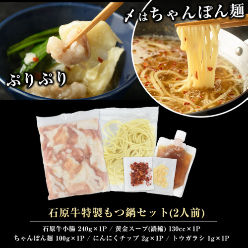 - 石原牛 特製もつ鍋セット(2人前) 石原牛 国産 牛 ウシ 牛肉 もつ鍋 モツ鍋 もつなべ 牛もつ鍋 鍋 鍋セット ちゃんぽん麺 スープ 冷凍【石原PRO】ishihara-7094