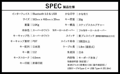 IT企業、金融機関、医療機関、教育機関など様々な産業で使用されているプロ用のキーボード。 長時間のタイピングでも指が疲れにくい静電容量無接点スイッチを採用し、押し心地が滑らかで耐久性に優れています。 【メーカー】 東プレ株式会社 【型番】 R3HA23 【サイズ】 163mm×465mm×30mm 【カラー】 スーパーホワイト 【スペック】 キー印刷:昇華印刷 キー荷重:ALL30g スイッチ寿命:5,000万回以上 キー構造:ステップスカルプチャー Nキーロールオーバー:フルNキーロールオーバー ケーブル長:1.8m 重量:1.6kg 【製造者】 東プレ株式会社 〒252-0253 神奈川県相模原市中央区南橋本3-6-7