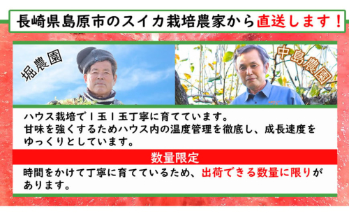AH094 ハウス栽培 長崎小玉スイカ ひとりじめ 2玉 4kg以上【 果物 くだもの フルーツ スイカ すいか 西瓜 数量限定 長崎県産 長崎県 島原市 】