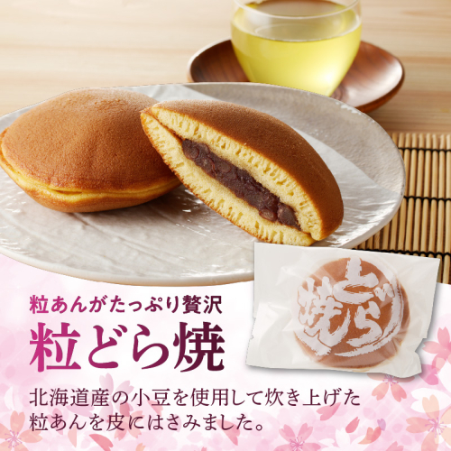 「粒どら焼」・・・北海道産の小豆を使用して炊き上げた粒あんを皮にはさみました。