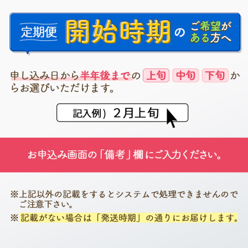 ご希望の場合は、お申し込みの際に「備考欄」にお届け希望開始時期を記載してください。