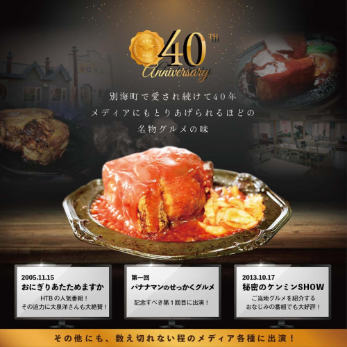 高さ10cmもある肉厚なポークチャップは、別海町名物として有名であり、各種メディアにもとりあげられるほど全国的に人気の一品となっております。