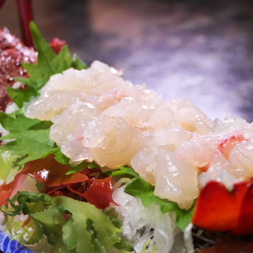 真空パックされた身の部分は、袋のまま流水で約10分解凍し、食べやすい大きさにカットすれば、お刺身として簡単にお召し上がりいただけます。