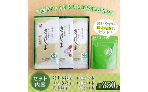 • A-017 霧島山の香り銘茶「きりしま」特上玉緑茶・やぶきた茶・粉末緑茶セット【霧島誠香苑製茶】