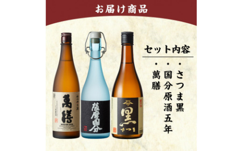 C-070 鹿児島本格芋焼酎「萬膳・国分原酒5年・さつま黒」小瓶3本セット【赤塚屋百貨店】