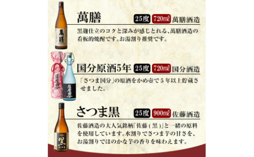 • C-070 鹿児島本格芋焼酎「萬膳・国分原酒5年・さつま黒」小瓶3本セット【赤塚屋百貨店】
