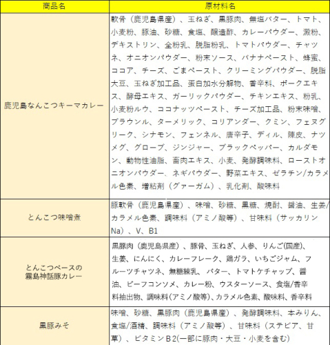 ・味噌煮・キーマカレー・霧島神話豚カレー:製造日より365日(常温)