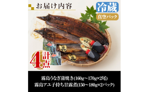 - B0-160 数量限定!霧島市育ちのあの「うなぎ」と霧島アユ子持ち甘露煮詰め合わせ(計4点)【田代水産】