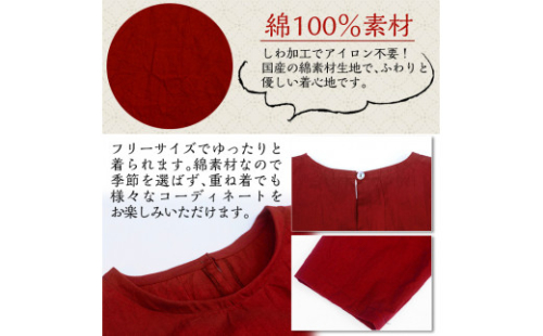 C5-013 手作り洋服・ワンピース(赤)綿100%【樫の木】 148780 - 鹿児島県霧島市