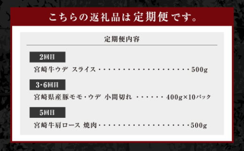 - <ミヤチク 宮崎県豚・宮崎牛6ヶ月定期便>お申込みの翌月下旬頃に第一回目発送(12月は中旬頃) 総量13.2kg 牛肉 和牛 黒毛和牛 4等級以上 ブランド牛 肉 宮崎牛 豚肉 国産 小分け セット 定期便 6回 新生活応援 卒業祝い 就職祝い 入学 卒業 お花見 引越し