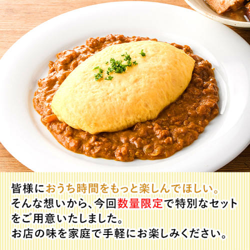 コロナ禍でなかなか外出や外食ができない状況で「もっとおウチ時間を楽しく過ごしていただきたい!」そんな想いのもと、自宅でお店の味が手軽に楽しめるオムライスと、職人がじっくり時間をかけて仕上げた職人手作りカレーをセットに致しました。プロの味をぜひご堪能ください。