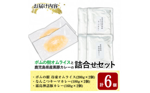 A0-268《数量限定》ポムの樹冷凍オムライス&鹿児島黒豚カレー3種詰め合わせセット(計6個)【富士食品】 148802 - 鹿児島県霧島市
