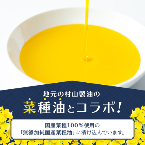 漁師さんや生産者の方々の中では「美味しい部位」としてずっと食べられてきているぶり・カンパチの胃袋ですが、加工場では、数量が少なく取り除くのに手間かかる等の理由で食用として活用されてきませんでした。この度、町内の純国産菜種油を使用した「アヒージョ」として完成させました。