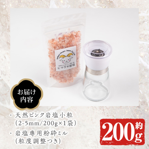 岩塩専用粉砕ミル付き!ピンク岩塩 ピンク小粒(約200g)!ヒマラヤ岩塩 ピンク岩塩 岩塩 塩 食塩 調味料 ミネラル 小粒塩 熱中症対策【梅研本舗ジャパン】akn047-16 148822 - 鹿児島県阿久根市