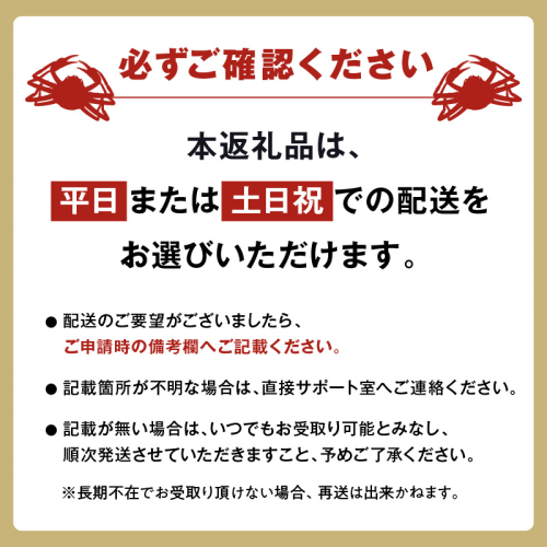 ・本商品は「間人ガニ」または「大善ガニ」1杯をお届けします(港のご指定はできません)。