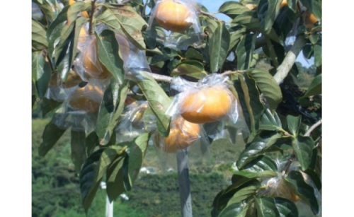 樹上で果実が実ったままの状態で、ひとつずつビニールの袋をかけ、渋抜き処理と熟成を行なった種無し柿です。