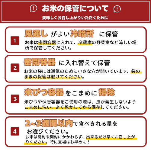 ※品質保持の為なるべく涼しい所で保管して頂き、精米日後1か月程でお早めにお召し上がり下さい。
