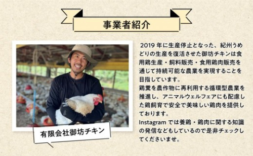 食肉産業展で地鶏・銘柄鶏のコンテストで最優秀賞を受賞した経歴を持つ紀州うめどり。