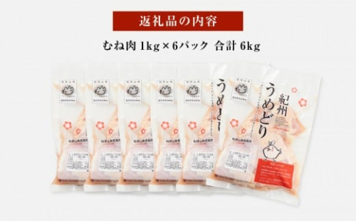 紀州うめどり むね肉 1kg × 6パック 合計 約6000g セット 冷凍 鶏肉 鶏 地鶏 肉