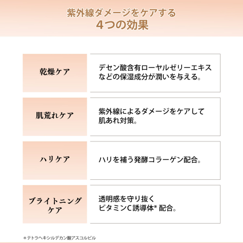 手が届きにくく、塗りにくい部分も簡単ケアでき光老化のあらゆる原因をカットしながらエタノールフリー処方で紫外線から肌を優しく守ります。