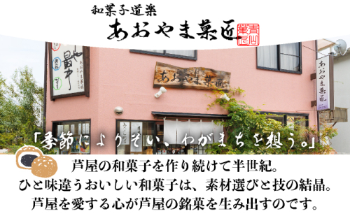 芦屋の和菓子を作り続けて半世紀。ひと味違うおいしい和菓子は、素材選びと技の結晶。芦屋を愛する心が芦屋の銘菓を生み出すのです。