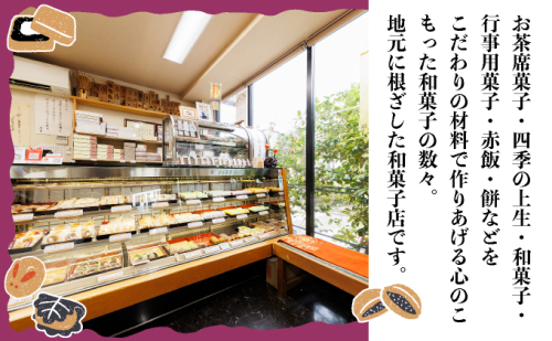 お茶席菓子・四季の上生・和菓子・行事用菓子・赤飯・餅などをこだわりの材料で作りあげる心のこもった和菓子の数々。