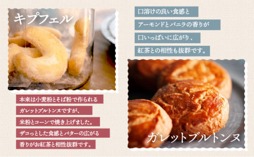 キプフェル:米粉(国内製造)、アーモンドプードル、コーンスターチ、バター、砂糖、塩、バニラオイル