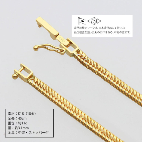 - K18 トリプル12面喜平ネックレス 45cm-11g 造幣局検定マーク入り|ゴールド 18金 K18 日本製 アクセサリー ジュエリー ネックレス レディース メンズ ファッション ギフト プレゼント 富山 富山県 魚津市 ※沖縄への配送不可