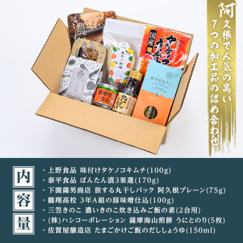 - 阿久根屋特選いいとこどりセット(全7種) タケノコキムチ 筍 ぼんたん漬3果選 ボンタン いわし イワシ 丸干し 豚みそ 豚味噌 きのこ 炊き込みご飯 煎餅 雲丹 ウニ うに だし醤油 出汁醤油 調味料 おつまみ お土産 ギフト【株式会社あくねや】akn052-02