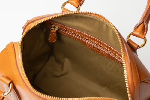 底マチも広く、ポーチや手帳と並べて収められるのは、まさにミニでも"ボストン"と呼べる収納力を持っています。