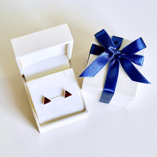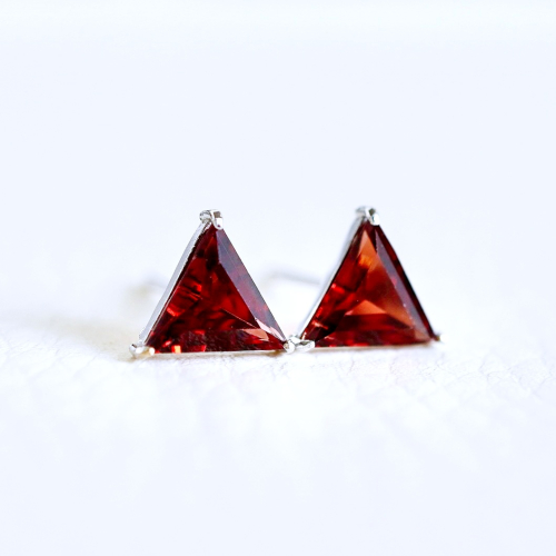 【商品詳細】 K14ホワイトゴールド、ガーネットのスタッドピアスです。 三角のトリリアントカットがおしゃれで、耳元をシンプルにスタイリッシュに飾ってくれます。 ガーネットの深みのある赤とトリリアントのシャープな形のコンビネーションをお楽しみください。 ガーネットは1月の誕生石です。 ケースに入れ、リボンをかけてお届けいたします。 【原材料】 素材:K14(14金)ホワイトゴールド ガーネット(6.0mm)