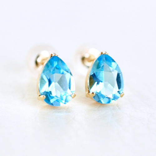 ブルートパーズの爽やかなカラーとツユ形のペアシェイプのコンビネーションが美しいシンプルアイテムで耳元に彩りを加えてくれます。