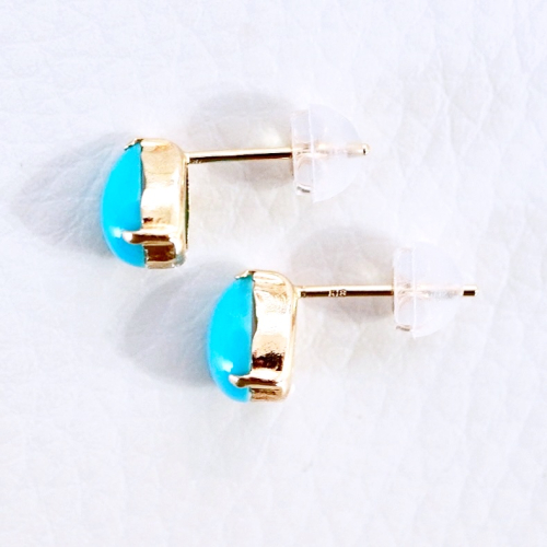 K18イエローゴールド トルコ石の一粒石スタッドピアスです。