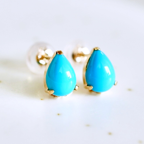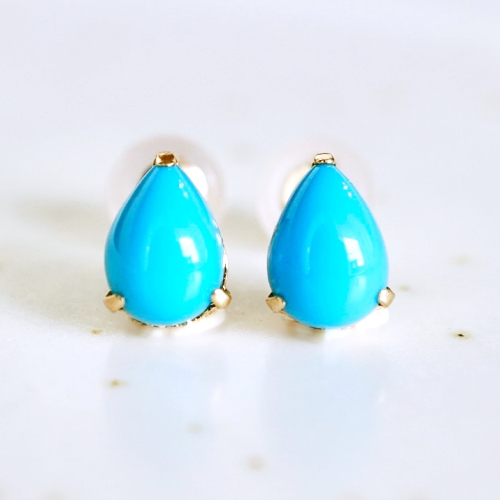 トルコ石の爽やかなブルーとツユ形のペアシェイプのコンビネーションが美しいシンプルアイテムで耳元に彩りを加えてくれます。