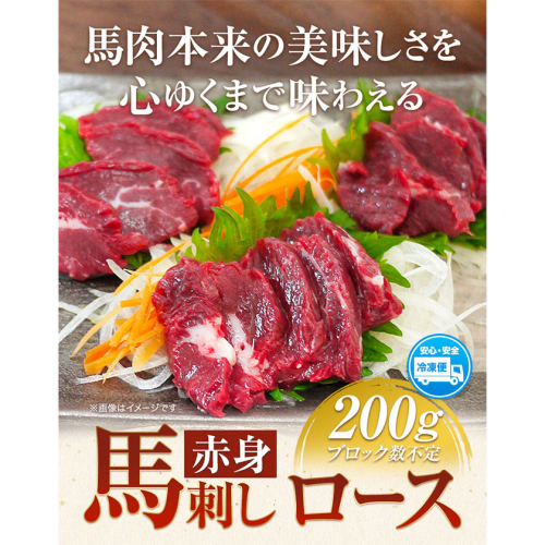 赤身馬刺し ロース 200g ブロック数不定 醤油付き 5ml×2袋 長洲町L(桜屋)《60日以内に出荷予定(土日祝除く)》 熊本県 長洲町 馬肉 馬刺し 赤身 ロース 熊本県産 国産