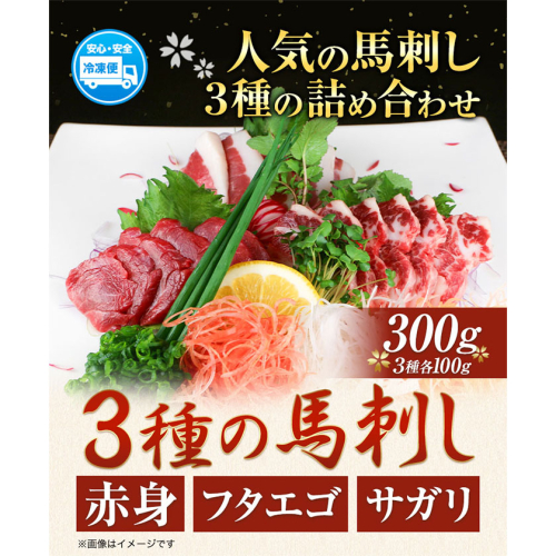 3種の馬刺し 赤身 フタエゴ サガリ 300g 各100g 醤油付き 5ml×2袋 長洲町L(桜屋)《60日以内に出荷予定(土日祝除く)》 熊本県 長洲町 馬肉 馬刺し 熊本県産 国産