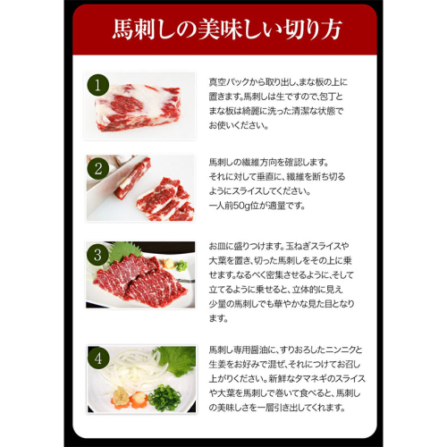 地場産品基準 告示第5条第8ハ号に適合 適合理由:熊本県 認定地域資源:馬肉(県内と畜)