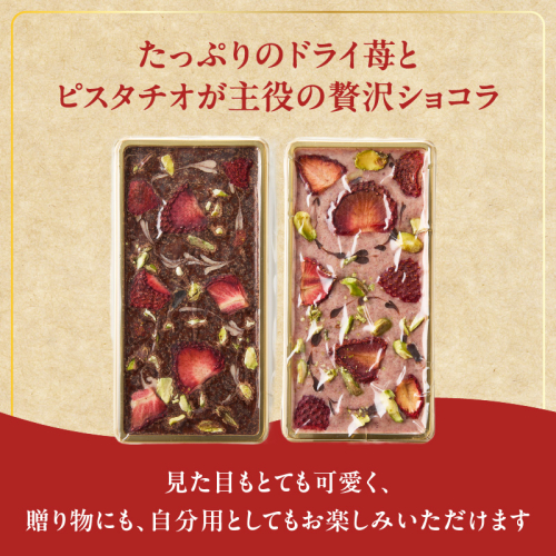 たっぷりのドライ苺とピスタチオが主役の贅沢なチョコです。