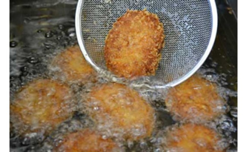 亀岡牛をふんだんに使用した、ひら山特製コロッケは特売で行列ができる人気商品です。また、ミンチカツとのセットは大人気で年々需要が増えNO1の人気商品です。