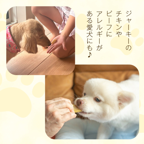 食物繊維たっぷり!ジャーキーのチキンやビーフにアレルギーがある愛犬にどうぞ。