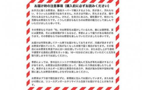 - 季節の旬野菜を約10~20品目 毎月× 全12回