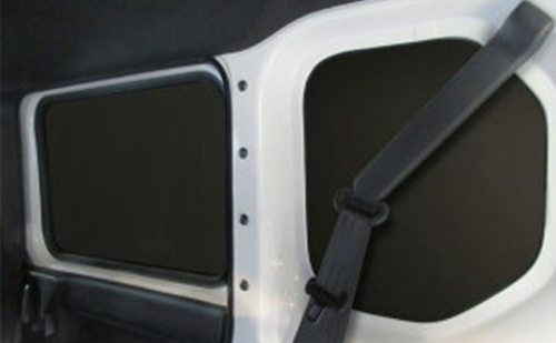 ■クオーターガラス、スライドドア、バックドアのガラスを積載物から保護します。
