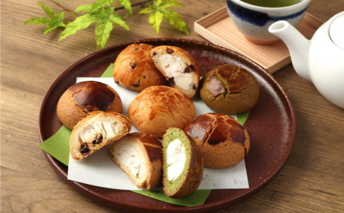 かぐやのチーズまんじゅうの特徴は、サクッとしたクッキー生地です。 チーズとの相性も抜群です。 フレーバーは、プレーン・レーズン入り・お茶・チョコチップの4種類です。それぞれの味をお楽しみください。