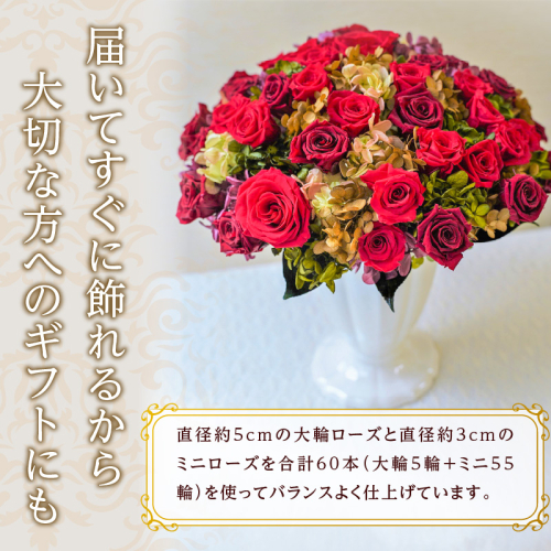 プリザーブドフラワーローズを贅沢に60輪使用した豪華なアレンジメントです。