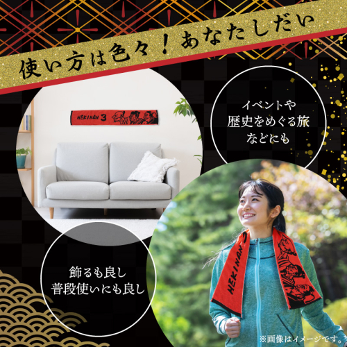 当市観光協会が開催した市制の記念事業をきっかけとして当市で特別にデザインしたマフラータオルです